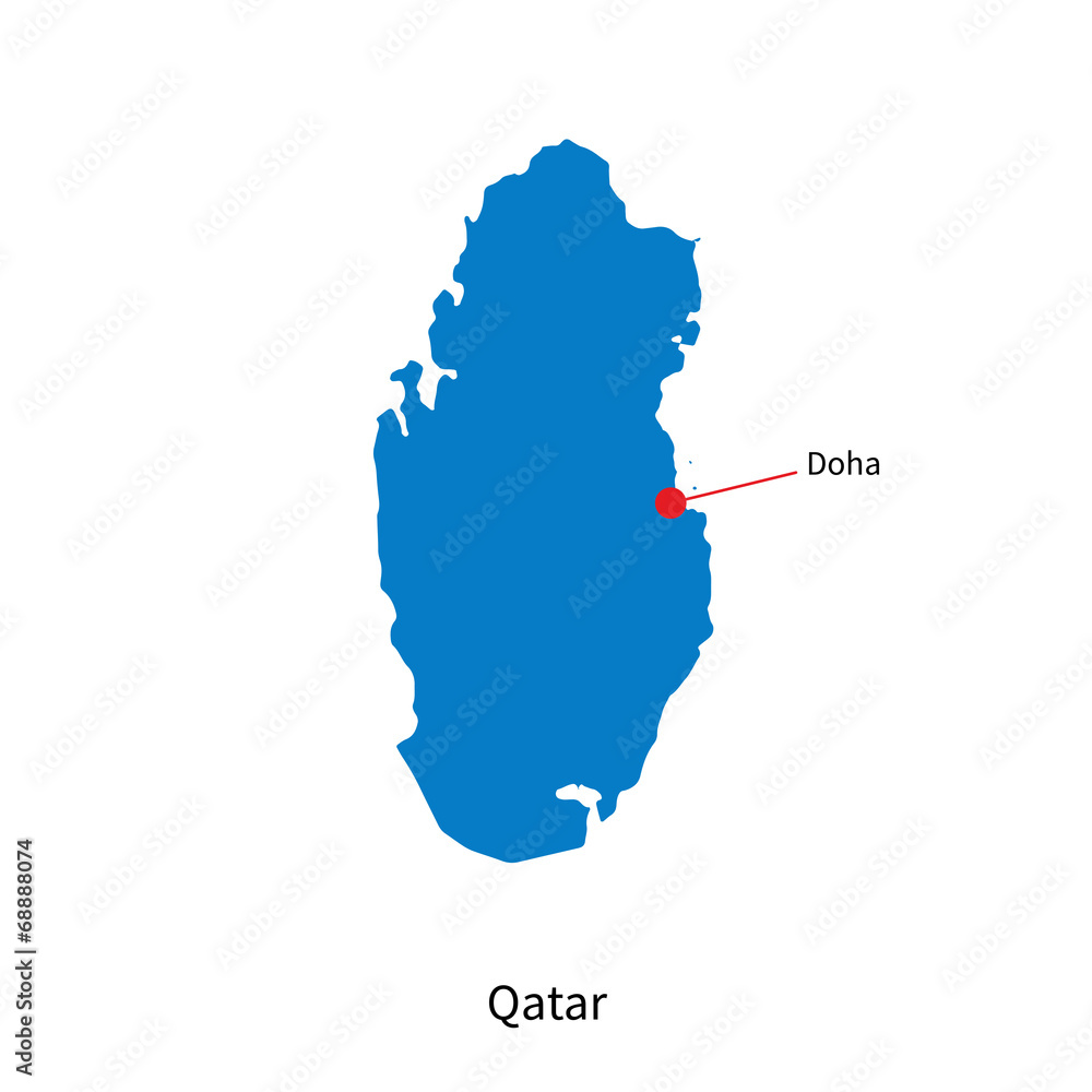 Detailed vector map of Qatar and capital city Doha Stock Vector