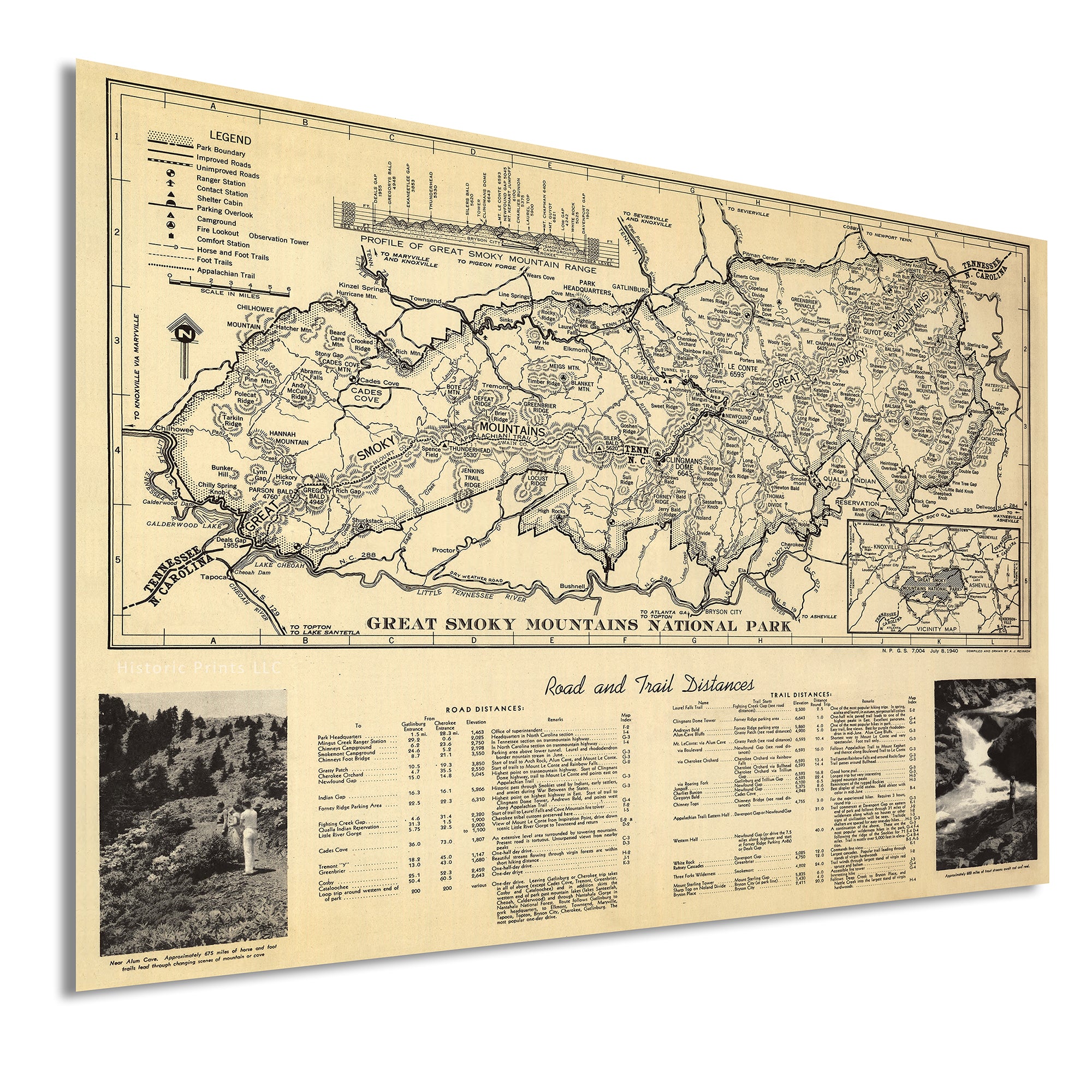 1940 Great Smoky Mountains Vintage Map Wall Art Print โ Historic