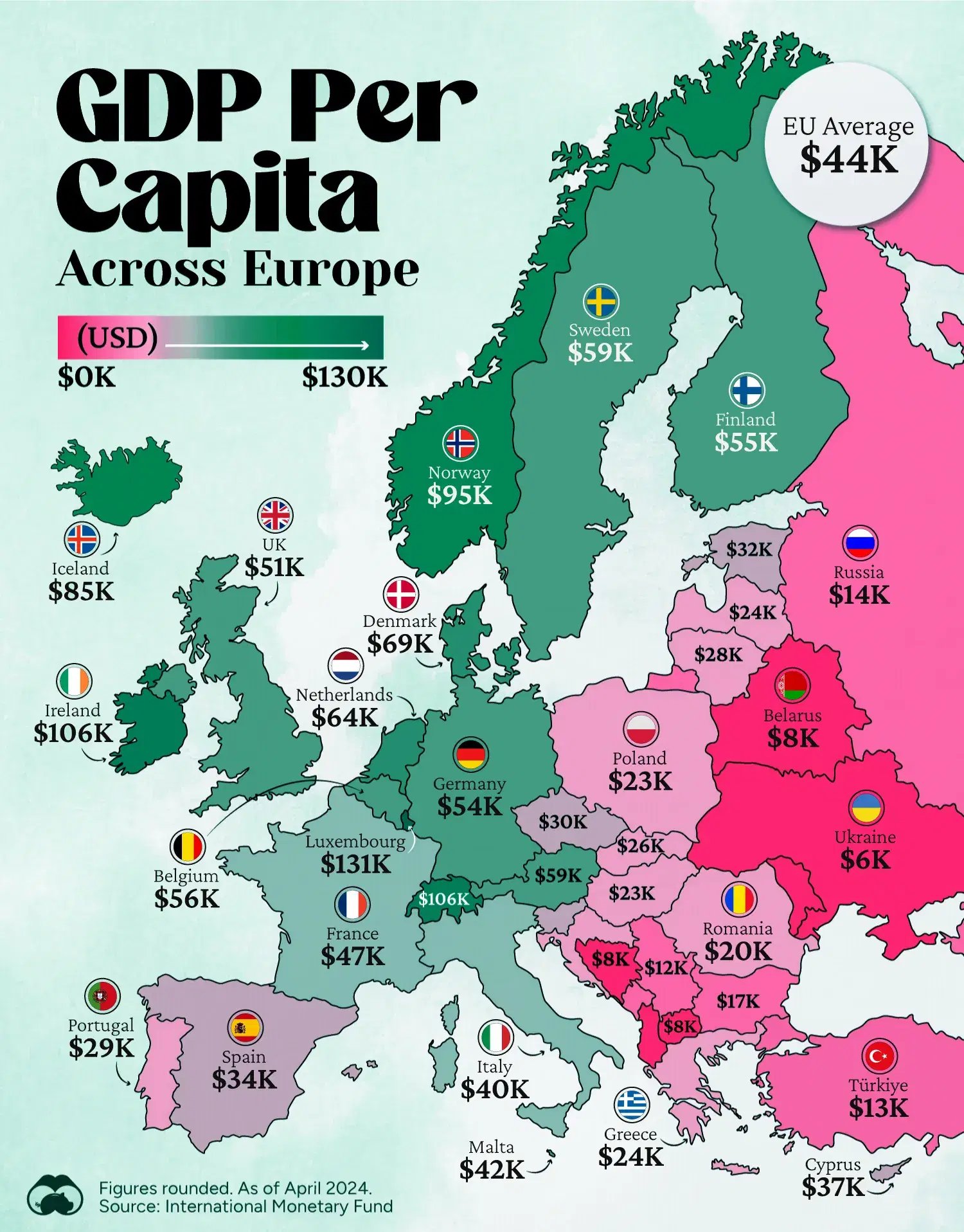 Luxembourg, Ireland, and Switzerland are Europe’s Richest