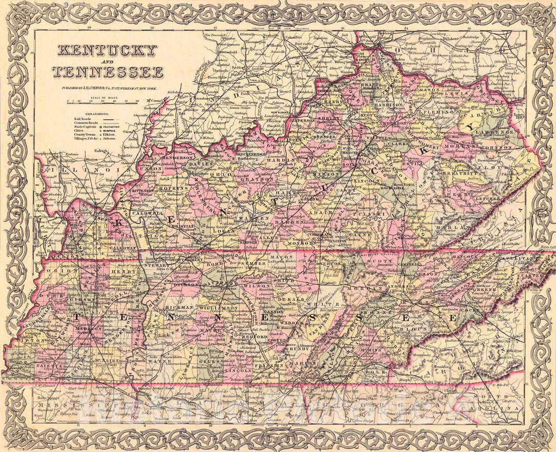 Historic Map : 1855 Kentucky and Tennessee : Vintage Wall Art